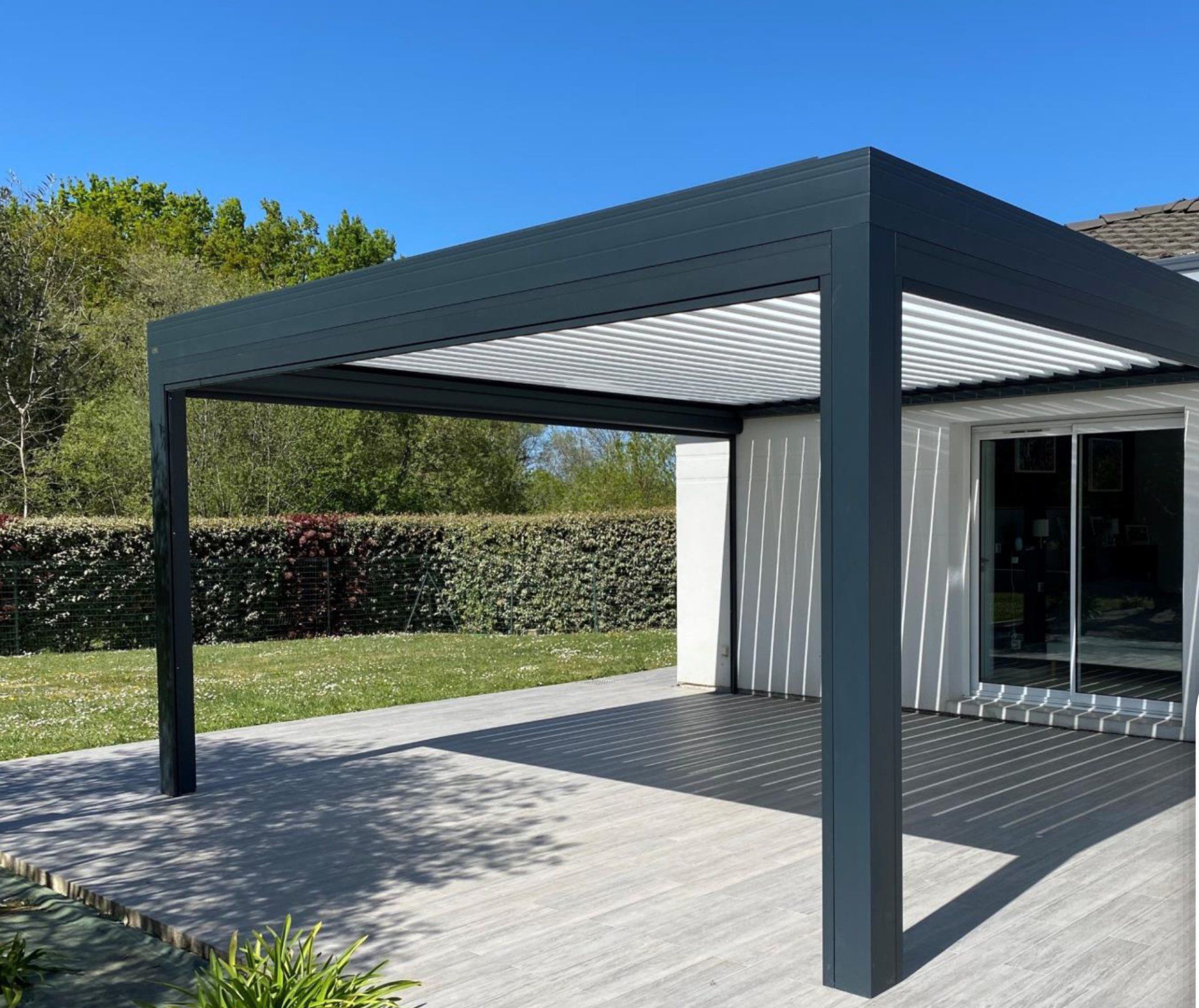 Un peu d'ombre et d'intimité dans votre jardin ? Nous proposons le conseil et la pose de superbes pergolas. Perpendiculaire à votre maison ou indépendante, elle apportera aussi du charme et comme une pièce extérieure dans votre jardin. En aluminium, ajourée avec des lames orientables ou avec un store déclinable, les esthétiques les plus modernes s'offrent à vous.